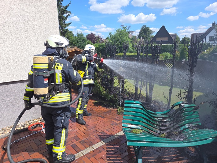 Neben der Hecke brannte auch eine Bank die schnell abgelöst werden konnte.