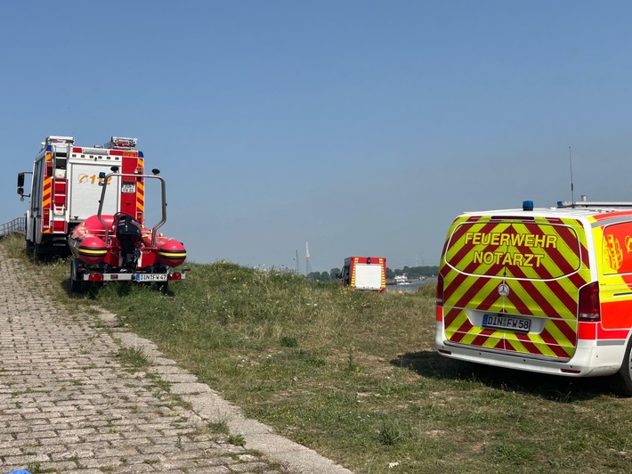 Während der Einsatz auf der Straße Kurze Fohr noch nicht ganz beendet war, erfolgte eine weitere Alarmierung (Parallelalarm) der Feuerwehr Dinslaken gegen 14:20 Uhr. Eine Person wurde im Rhein gesichtet. Mehrere Feuerwehren wurden hierzu alarmiert und rückten zur Rettung der Person aus, so auch die Feuerwehr Dinslaken. Erkundungsmaßnahmen wurden umgehend durch die eingesetzten Feuerwehren eingeleitet. Leider konnte die Person nur noch tot aus dem Rhein geborgen werden. Die eingesetzten Feuerwehrkräfte konnten anschließend nach und nach von der Einsatzstelle zu ihren Standorten abrücken. Für die letzte Einheit der Feuerwehr Dinslaken endet der Einsatz gegen 15:20 Uhr. Für die Feuerwehr Dinslaken waren die Einheiten Hauptwache und Eppinghoven im Einsatz sowie der Rettungsdienst.