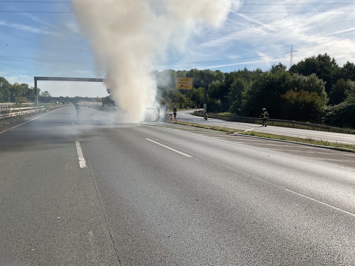 Die Feuerwehr Dortmund wurde am Sonntag, den 07.09.2025 um 10:22 Uhr zu einem gemeldeten Fahrzeugbrand auf der Autobahn A2 alarmiert.