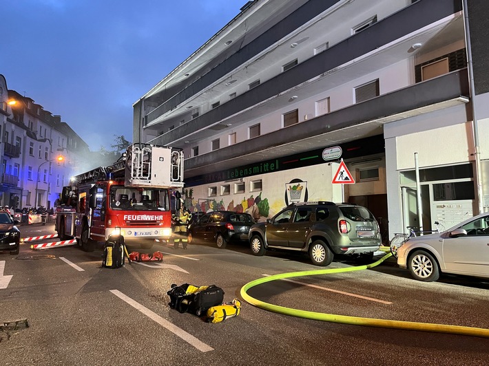 Am Mittwochmorgen wurde die Feuerwehr Essen um 5:37 Uhr zu einem Kellerbrand in einem Wohn- und Geschäftsgebäude in der Kölner Straße in Essen-Frohnhausen alarmiert. Beim Eintreffen drang bereits dichter Brandrauch aus den Kellerschächten. Das Gebäude besteht aus einem Supermarkt im Erdgeschoss, drei Vollgeschossen mit Laubengängen sowie einem Dachgeschoss. Der Treppenraum war vollständig verraucht und nicht mehr begehbar.