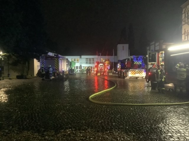 Nach Auslösung der Brandmeldeanlage konnte durch die ersten Einsatzkräfte zunächst kein Brandereignis festgestellt werden. Im Zuge der Erkundung wurde im Erdgeschoss eines gegenüberliegenden Gebäudeteils ein Brand festgestellt. An der Gebäuderückseite schlugen bereits Flammen aus einem Fenster.