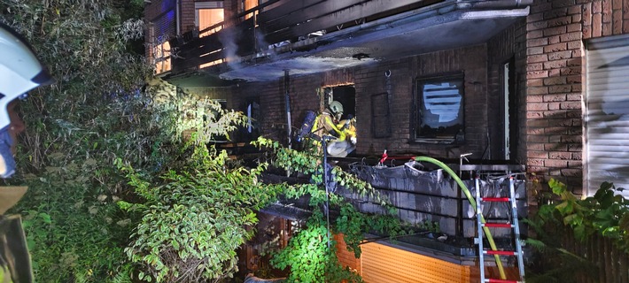 Kurz nach 23 Uhr meldeten Anwohner und Nachbarn der Leitstelle Rhein-Kreis Neuss hellen Feuerschein auf dem Balkon eines Mehrfamilienhauses. Diese entsandte daraufhin haupt- und ehrenamtliche Kräfte mehrerer Einheiten der Feuerwehr. Noch auf der Anfahrt veranlasste der Einsatzleiter, Brandoberinspektor Christopher Hurtz, die Alarmierung zusätzlicher Einheiten, nachdem weitere Anrufer von der Ausdehnung des Brandes berichteten.
