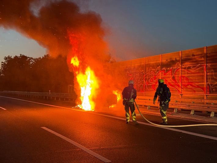 Die Einheiten Hünxe und Drevenack wurden am 10. August 2025 um 21:25 Uhr mit dem Einsatzstichwort „Pkw-Brand“ auf die BAB 3 in Fahrtrichtung Niederlande alarmiert. Da die genaue Einsatzörtlichkeit zunächst unklar war, wurde zusätzlich die Freiwillige Feuerwehr Hamminkeln alarmiert.