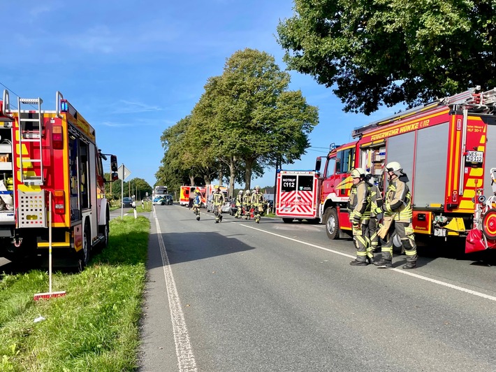 Die Einheiten Hünxe, Bruckhausen und Drevenack wurden am 22. September 2025 um 09:46 Uhr mit dem Einsatzstichwort „Person eingeklemmt“ zur Schermbecker Landstraße im Ortsteil Drevenack alarmiert.
