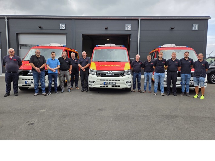 Umso größer war die Freude unter allen Beteiligten, die Fahrzeuge nach der Abnahme in Langerwehe in das Stadtgebiet Mechernich überführen und an den dortigen Standorten (Bleibuir, Kommern, Obergartzem) als Führungsmittel in den Dienst stellen zu können. Der Dank geht an die beteiligten Firmen MAN Frechen, PTS Group GmbH Dormagen, Schäfer Metallbau Obergartzem, BNS Berners-Nutzfahrzeug-Service GmbH, Fahrzeugtechnik Glasmacher GmbH Bergheim und zu guter Letzt an die mit der Fertigstellung beauftragte Firma Fahrzeugbau Reinartz in Langerwehe.
