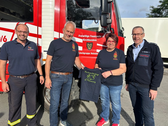 Auch die Einheitsführung der Einheit Heinsberg Christof Kordes und Heiner Siebel freuten sich für die Kinder und das neue einheitliche Outfit. Sie bedankten sich herzlich bei Christoph Henrichs für diese nicht alltägliche Spende an die Kinderfeuerwehr.