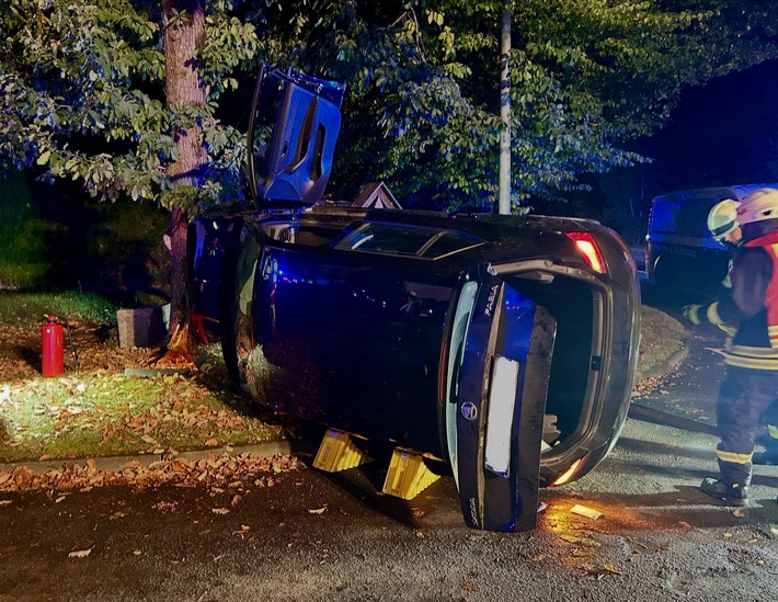 Am Dienstagabend wurde die Feuerwehr Lennestadt um 20:39 Uhr zu einem Verkehrsunfall auf der Verbindungsstraße zwischen den Ortsteilen Maumke und Meggen alarmiert. Aus bislang ungeklärter Ursache geriet ein Pkw von der Fahrbahn ab und kam seitlich liegend zum Stillstand.