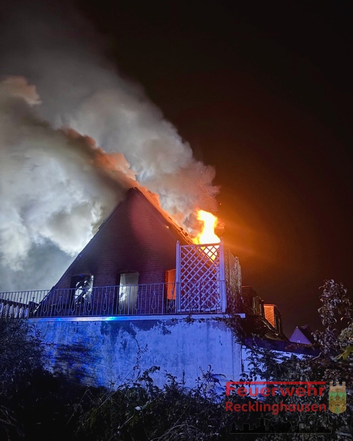 In der Nacht auf Dienstag (09. September 2025) kam es in Recklinghausen-Ost zu einem massiven Wohnungsbrand. Ein Hausbewohner musste hierbei mit schwersten Verletzungen durch Kräfte der Feuerwehr aus dem Brandhaus gerettet werden.