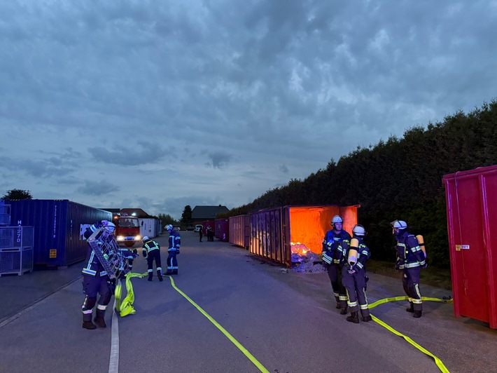 Am Freitagmorgen wurde der Löschzug Mitte um 05:28 Uhr mit dem Alarmstichwort „FEUER_1 – brennt Seefrachtcontainer // bereits teilweise ausgebrannt“ in die Straße Baaken in Werne Mitte alarmiert.