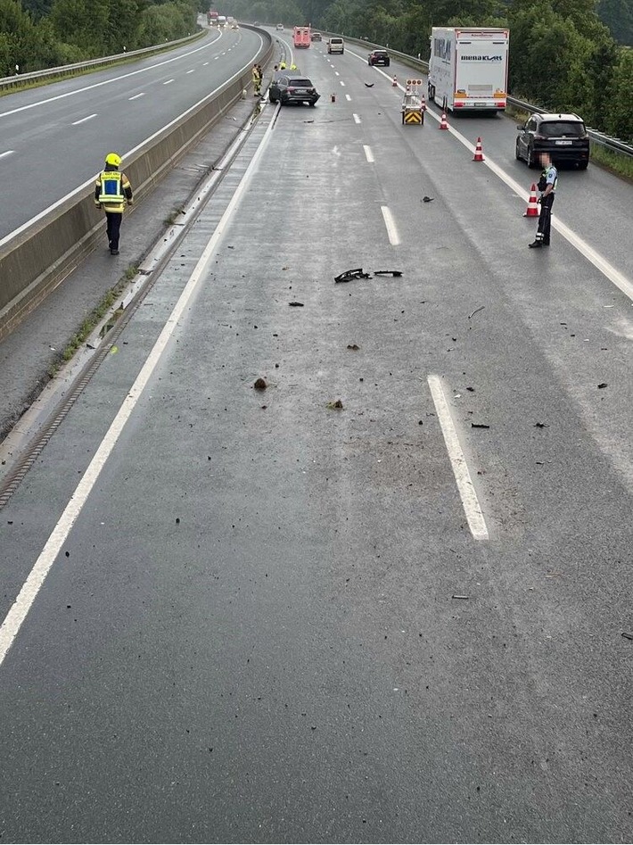 HC/ Bielefeld- Bruchmühlen- Bünde- BAB 30- Am Donnerstagmorgen, 26.06.2025, schleuderte ein Mercedes-Fahrer auf der A 30 bei Starkregen in die Leitplanken. Er erlitt leichte Verletzungen.