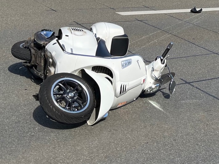 Am Piaggio-Roller entstand schwerer und am Auto leichter Sachschaden. Der Gesamtschaden beläuft sich auf rund 8000 Euro. Während der Unfallaufnahme konnte der nachfolgende Verkehr in beide Fahrtrichtungen an der Unfallstelle vorbeigeführt werden.