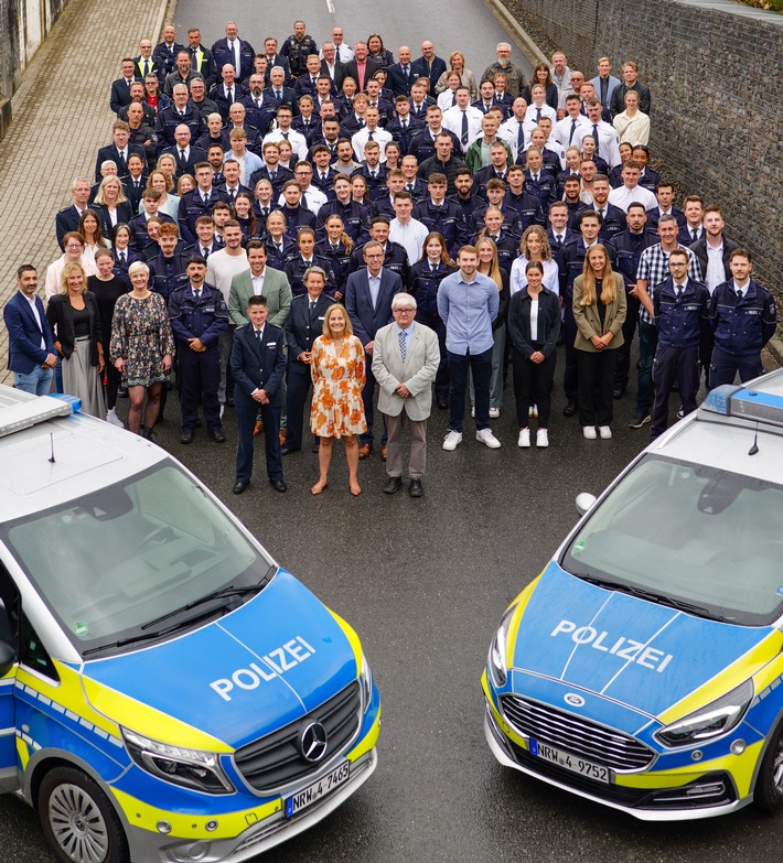 Die Polizei in Bochum, Herne und Witten bekommt Verstärkung: Ab sofort versehen 102 neue Polizeibeamtinnen und Polizeibeamte sowie vier Verwaltungsbeamte ihren Dienst beim Polizeipräsidium Bochum.