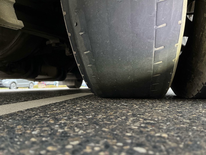 Im Rahmen einer allgemeinen Verkehrskontrolle fiel der 40-Tonnen-Sattelzug aufgrund seines schlechten technischen Zustands auf. Bei der anschließenden Überprüfung stellten die eingesetzten Beamten an insgesamt vier Reifen der Zugmaschine erhebliche und sicherheitsrelevante Schäden fest. Teilweise waren die Reifen derart abgefahren, dass kein Profil mehr erkennbar war; in mehreren Bereichen lag bereits das Drahtgeflecht der Karkasse offen.