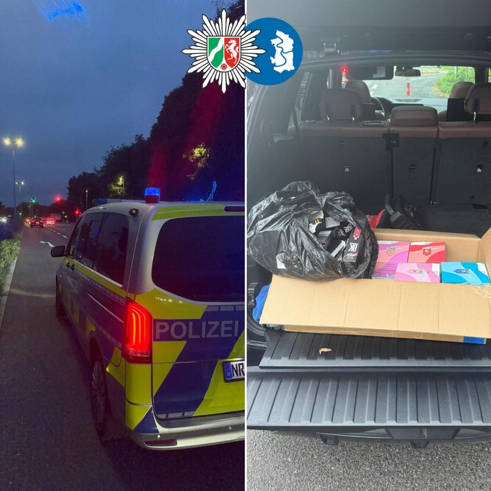 Ein 5er-BMW fuhr mit überhöhter Geschwindigkeit über die Moerser Straße. Um das zu schnelle Fahren zu ahnden, hielten die Polizisten den 44-jährigen Duisburger an. Bei der Kontrolle stellten die Einsatzkräfte mehrere große Kartons befüllt mit Vapes im mittleren dreistelligen Bereich in dem Wagen fest. Weil keine Steuerbanderolen festgestellt werden konnten, besteht neben dem Geschwindigkeitsverstoß der Verdacht einer Straftat nach der Abgabenordnung.