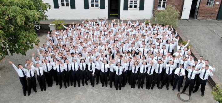 Polizeipräsident Alexander Dierselhuis ernannte am Freitag (29. August) 203 Studierende der Hochschule für Polizei und öffentliche Verwaltung in NRW (HSPV NRW) im historischen Kultur- und Bürgerzentrum „Steinhof“ zu Polizeikommissarinnen und Polizeikommissaren.