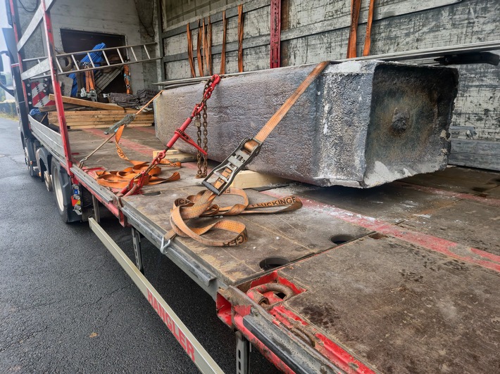 Am gestrigen Donnerstagvormittag (11 Uhr) hatten Spezialisten des Verkehrsdienstes der Polizei Euskirchen auf der Bundesstraße 51 in Blankenheim einen buchstäblich „gewichtigen“ Fang: Ein aus Österreich zugelassener, überlanger Lastwagen transportierte zwei unscheinbare, aber jeweils elf Tonnen schwere Stahlblöcke.