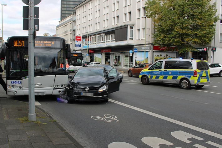 Der 39 Jahre alte Wuppertaler fuhr in Begleitung seines einjährigen Kindes mit seinem VW Golf um etwa 14 Uhr auf der Körnerstraße und beabsichtigte, nach links in die Grabenstraße abzubiegen. Hierbei nahm er einen Kleintransporter wahr, der ihm entgegenkam und verkehrsbedingt vor der Einmündung zur Grabenstraße anhielt. Der 39-Jährige scherte ein und übersah hierbei jedoch einen Bus, der ihm auf einer Busspur neben dem Kleintransporter entgegenkam. Der VW und der Bus kollidierten. Durch die Wucht des Aufpralls wurden der 39-jährige Unfallverursacher, der 40-jährige Busfahrer sowie ein 28-jähriger Fahrgast des Busses leicht verletzt. Vor Ort erschienen Kräfte des Rettungsdienstes, die die Verletzungen der Männer behandelten. Von der Unfallstelle musste der VW Golf des 39-Jährigen abgeschleppt werden, da dieser nicht mehr fahrbereit war. Der Gesamtschaden beläuft sich schätzungsweise auf etwa 8.000 Euro. Das Verkehrskommissariat hat die Ermittlungen zum Unfall übernommen. (rst)