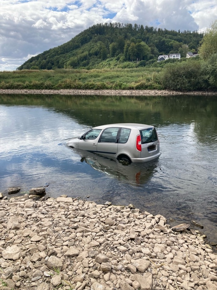 Am Sonntagnachmittag rollte ein PKW im Bereich des Freibades Höxter in die Weser.