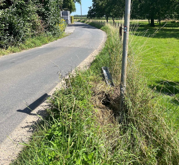 Durch einen unbekannten Verkehrsteilnehmenden kam es an der Einmündung Alter Gelinterweg / Meuskendyk in Wachtendonk zu einer Verkehrsunfallflucht. Der Sachschaden an einem Zaunpfosten sowie dem Pfosten eines Verkehrsschilds wurde am Mittwoch (6. August 2025) festgestellt. Durch die eingesetzten Beamten konnte an der Unfallörtlichkeit ein orangefarbenes Kunststoffteil, welches nach aktuellem Kenntnisstand von einem Lkw (seitlicher Blinker) stammt, sichergestellt werden. Die oder der Unfallverursacher entfernte sich nachfolgend von der Unfallörtlichkeit ohne seinen Pflichten als Unfallverursacher nachzukommen.