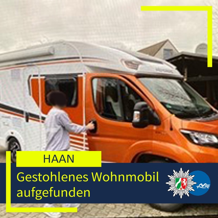 Das in der Nacht auf Dienstag, 9. September 2025, in Haan gestohlene Wohnmobil der Marke Weinsberg ist aufgefunden worden. Die Polizei Mettmann hatte in einer Pressemeldung über den Diebstahl berichtet.
