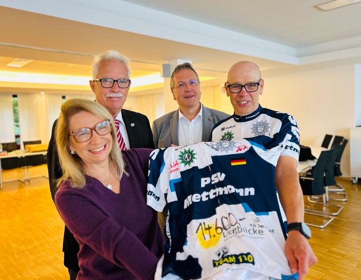 In den vergangenen Wochen und Monaten hatte die Kreispolizeibehörde Mettmann mehrfach über die Benefizradtour von Frank Eigelshofen berichtet. Unter dem Motto „NieRadlos“ war der ehemalige und inzwischen pensionierte Leiter der Wülfrather Polizeiwache sechs Wochen lang mit seinem Fahrrad einmal rund um Deutschland gefahren und hatte dabei Spenden für den Verein „Aktion Lichtblicke“ gesammelt (siehe dazu unter anderem unsere Pressemeldung unter folgendem Link: https://www.presseportal.de/blaulicht/pm/43777/4648503).