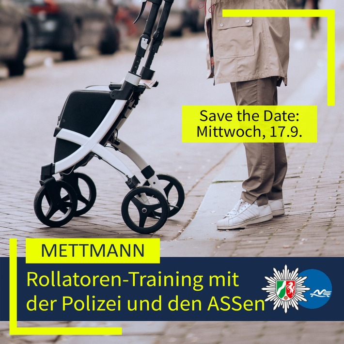 Aus diesem Grund bietet die Kreispolizeibehörde Mettmann gemeinsam mit dem Aktionsbündnis Seniorensicherheit (ASS!), der Caritas und dem Sanitätshaus Quarg im Rahmen des Mettmanner Seniorentags am Mittwoch (17. September 2025) ein so genanntes „Rollatoren-Training“ an.