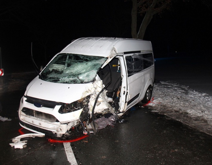 Der Ford-Fahrer befuhr gegen 19:30 Uhr die Döhrener Straße von der Bundesstraße 482 kommend in Richtung Döhren. Kurz vor der Straße „Heuken“ verlor er auf winterglatter Straße ausgangs einer Rechtskurve die Kontrolle über sein Fahrzeug und kam nach links von der Fahrbahn ab. Hier kollidierte er mit einem Baum und schleuderte anschließend auf die Straße zurück. Quer auf der Fahrbahn kam der Transit zum Stehen. Der 43-Jährige wurde in seinem Wagen eingeklemmt und musste von der Feuerwehr aus dem Fahrzeug geborgen werden.