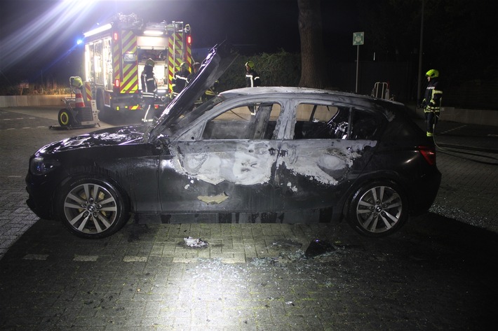 Einsatzkräfte der Feuerwehr löschten die Flammen. Der auf einem Parkplatz abgestellte Wagen brannte dennoch vollständig aus. Hinweise zur Brandursache liegen bislang noch nicht vor.