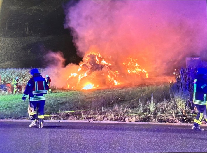 Vor Ort konnten die Einsatzkräfte etwa 40 Strohballen im Vollbrand feststellen.