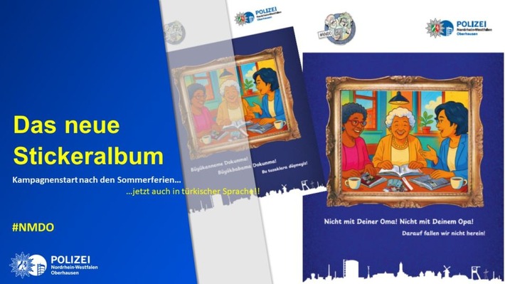 Bereits im dritten Jahr können Seniorinnen und Senioren mit Enkeln, Verwandten oder Freunden und Bekannten bei Aktionen der Polizei Oberhausen und ihrer zahlreichen Kooperationspartner ihr #NMDO-Stickeralbum kostenlos erhalten und mit den dreißig benötigten Stickerbildern befüllen.