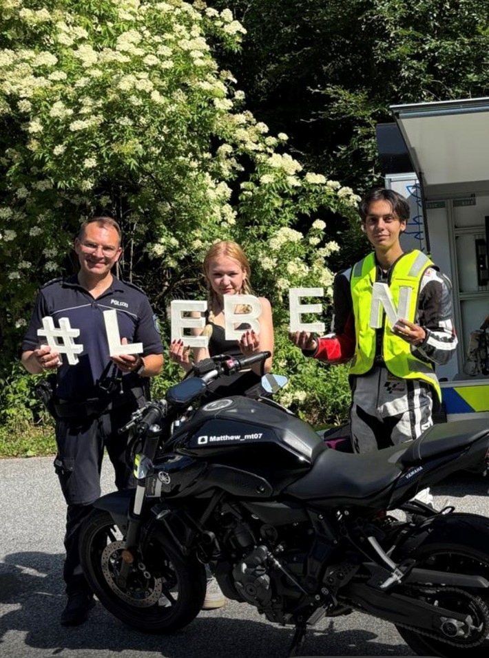 Parallel zu den Geschwindigkeitskontrollen führten die Polizeibeamte auch Maßnahmen zur Unfallprävention durch. Ziel dabei war es, die Biker für die Gefahren im Straßenverkehrs zu sensibilisieren – sicher ankommen, nicht umkommen!