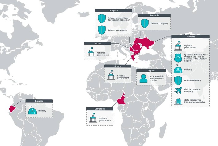 Die meisten betroffenen Organisationen befinden sich in der Ukraine, Bulgarien und Rumänien. Viele dieser Unternehmen arbeiten an der Herstellung von Waffen sowjetischer Bauart, die für den Einsatz durch ukrainische Streitkräfte besonders relevant sind. Daneben wurden auch Ziele in Afrika und Südamerika registriert. Der regionale Schwerpunkt liegt jedoch klar auf osteuropäischen Firmen mit Ukraine-Bezug.